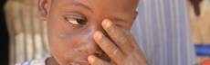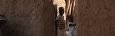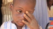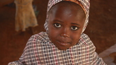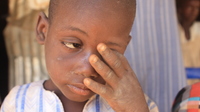 Lukman is 5 years old. He lives in Bagega. The sun drenches the village in heat. In the family compound, he plays with his 9 siblings, tugging at their clothes, tussling in the dirt. He grabs their arms to guide his footsteps. Lukman cannot see his brothers and sisters. He became blind when he was a 1 year old boy.